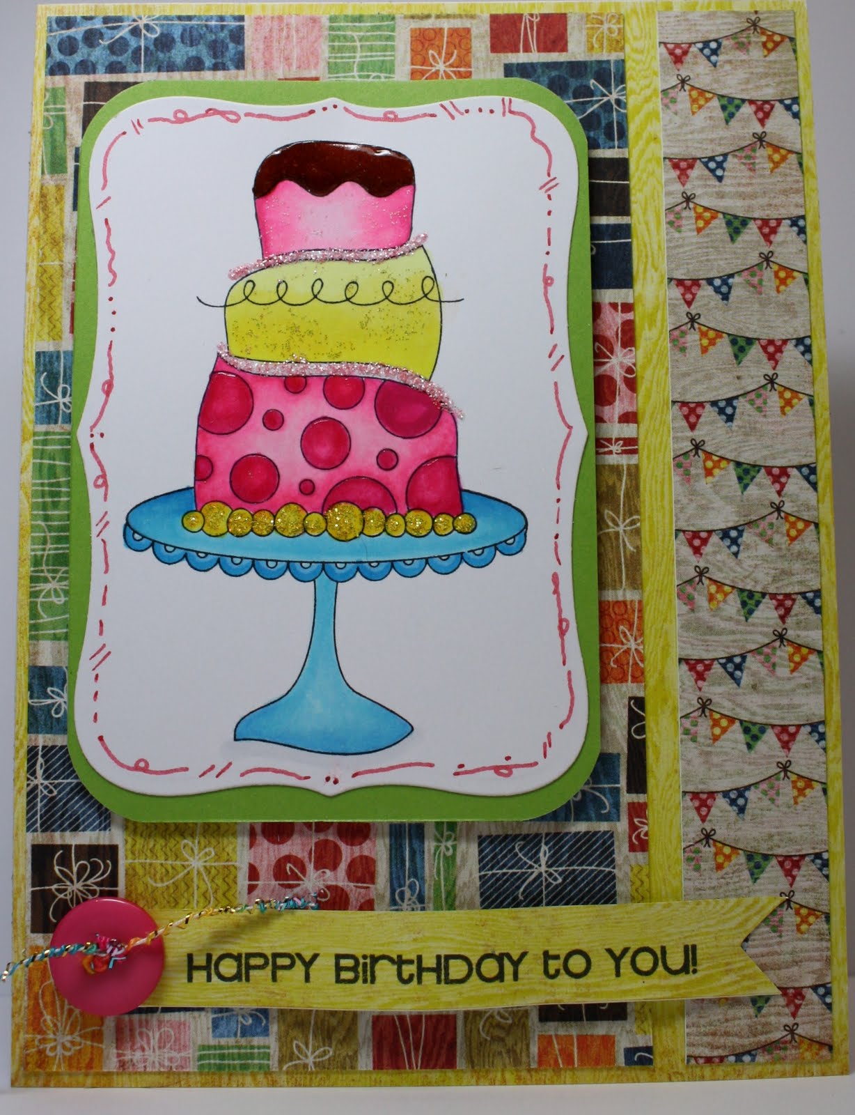 Cute BD card, love the colors and added sparkle!